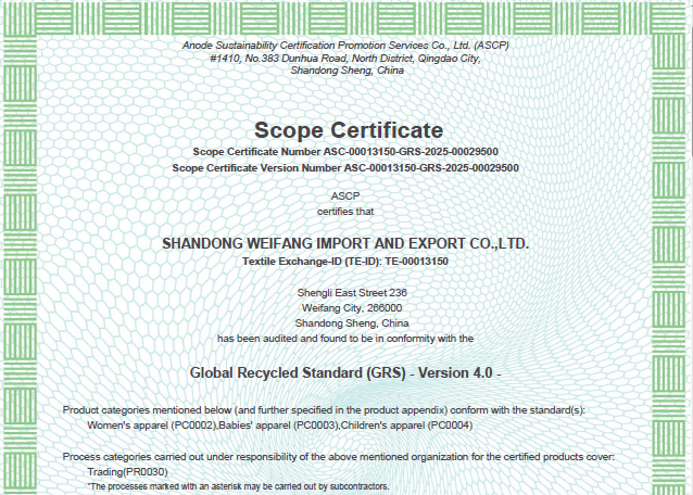 公司自營(yíng)和代理服裝、食品、五金、化工、機(jī)電等各類商品及技術(shù)的進(jìn)出口業(yè)務(wù),公司有專門的生產(chǎn)、加工基地,并通過(guò)了Oeko - Tex Standard 100、GRS、OCS、RCS、USCTP等多項(xiàng)認(rèn)證,可以按客戶要求設(shè)計(jì)生產(chǎn),同時(shí)承辦中外合資經(jīng)營(yíng)、合作生產(chǎn)、開展“三來(lái)一補(bǔ)”以及技術(shù)輸出、易貨、邊境貿(mào)易等業(yè)務(wù)。公司產(chǎn)品出口到日本、法國(guó)、俄羅斯等50多個(gè)國(guó)家或地區(qū)。